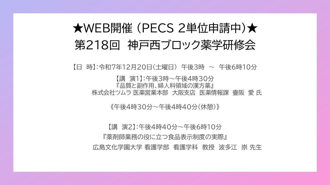 第218回 神戸西ブロック薬学研修会