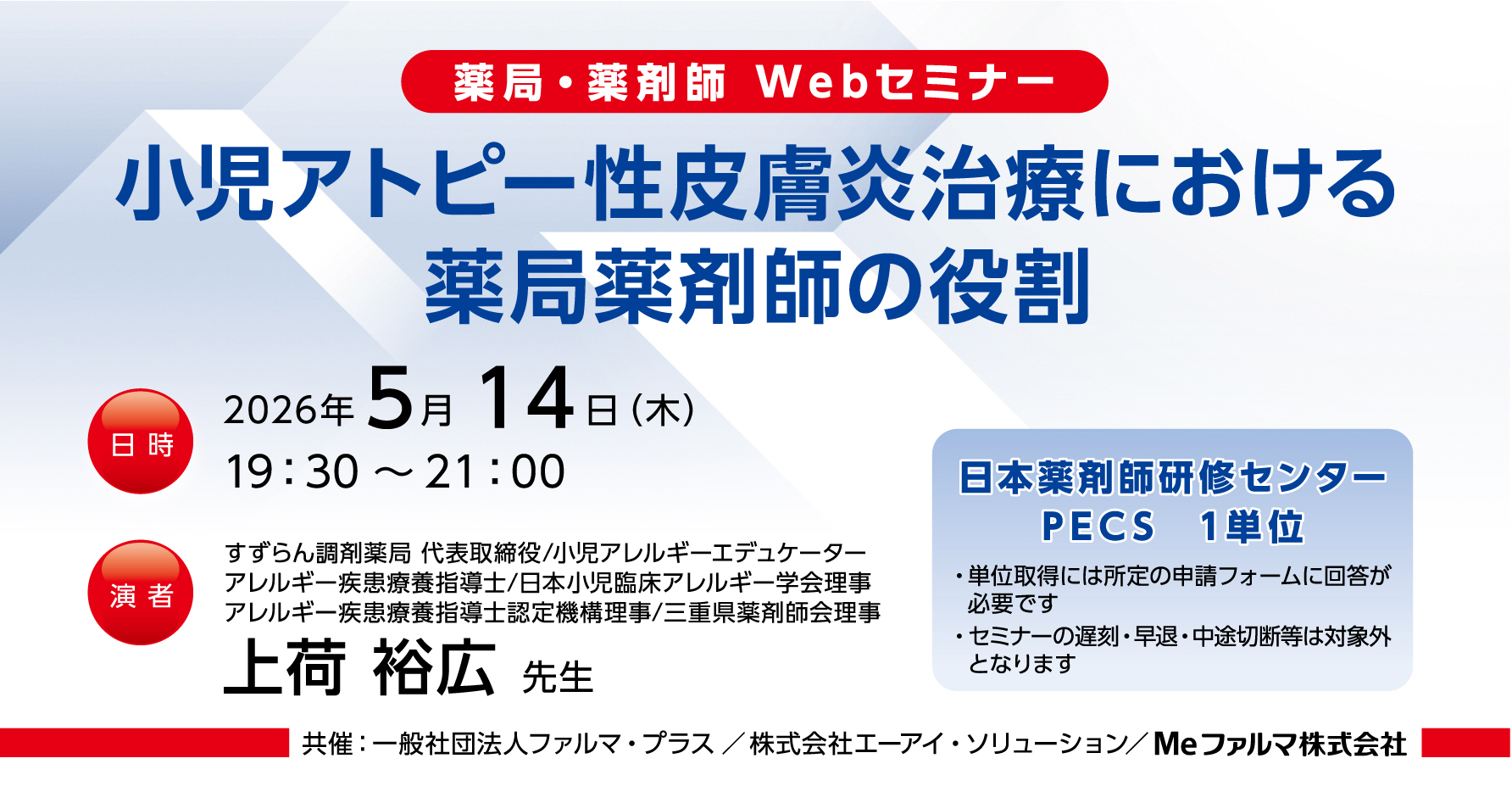 【無料・PECS1単位】5月14日 Web セミナー「小児アトピー性皮膚炎治療における薬局薬剤師の役割」